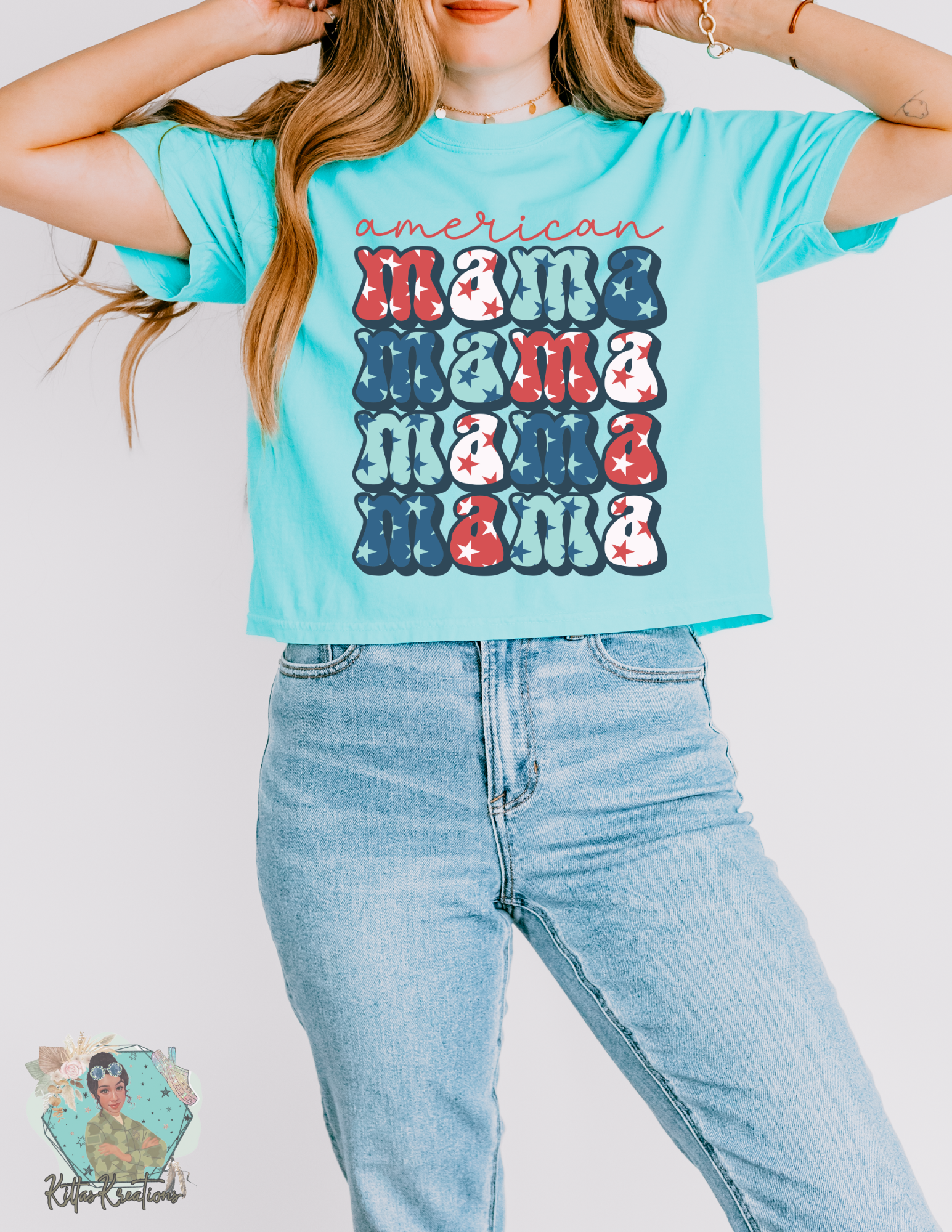 Chalky-mint full length tee or boxy tee. this beautiful blue with mama down the front.