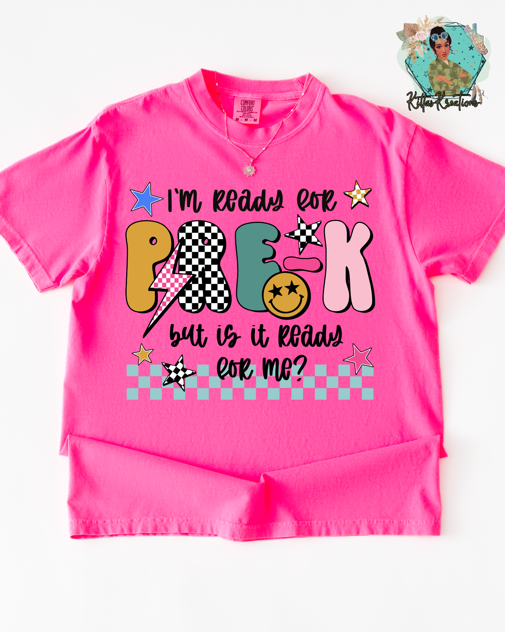 Neon Pink comfort colors t-shirt with your Childs grade heat pressed on. Refer to the size chart for measurements to ensure an accurate fit.