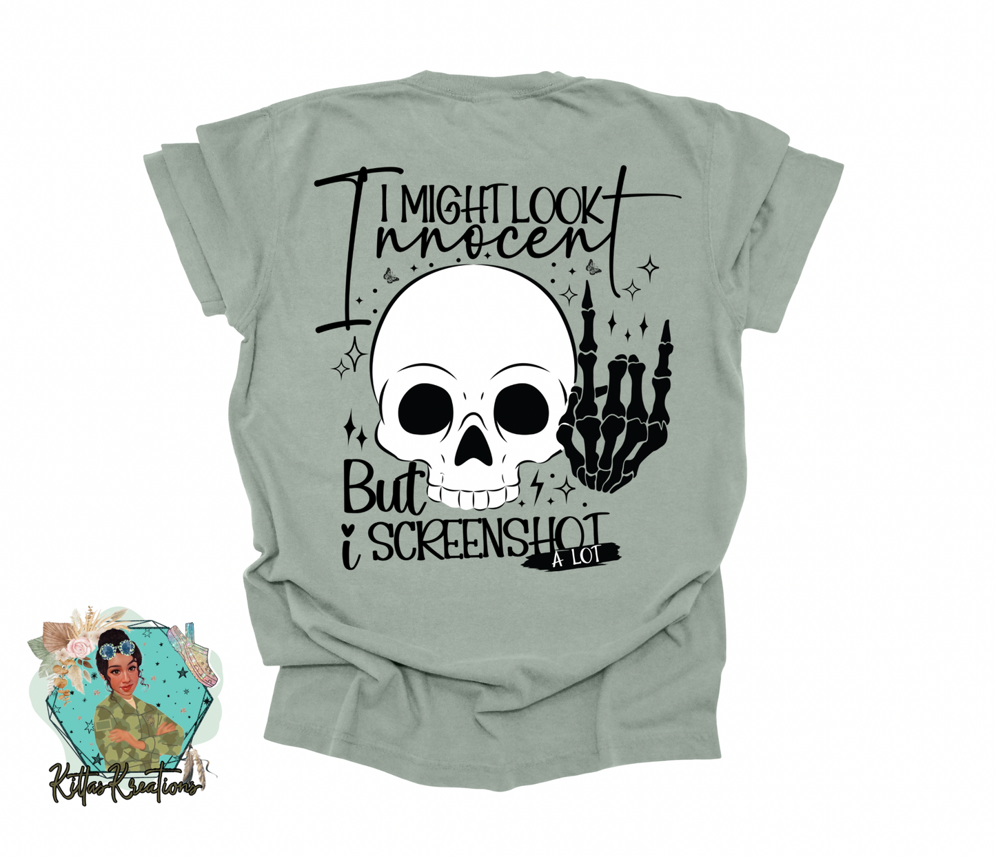Comfort colors t-shirt in the color bay with the above image pressed on the front and back.