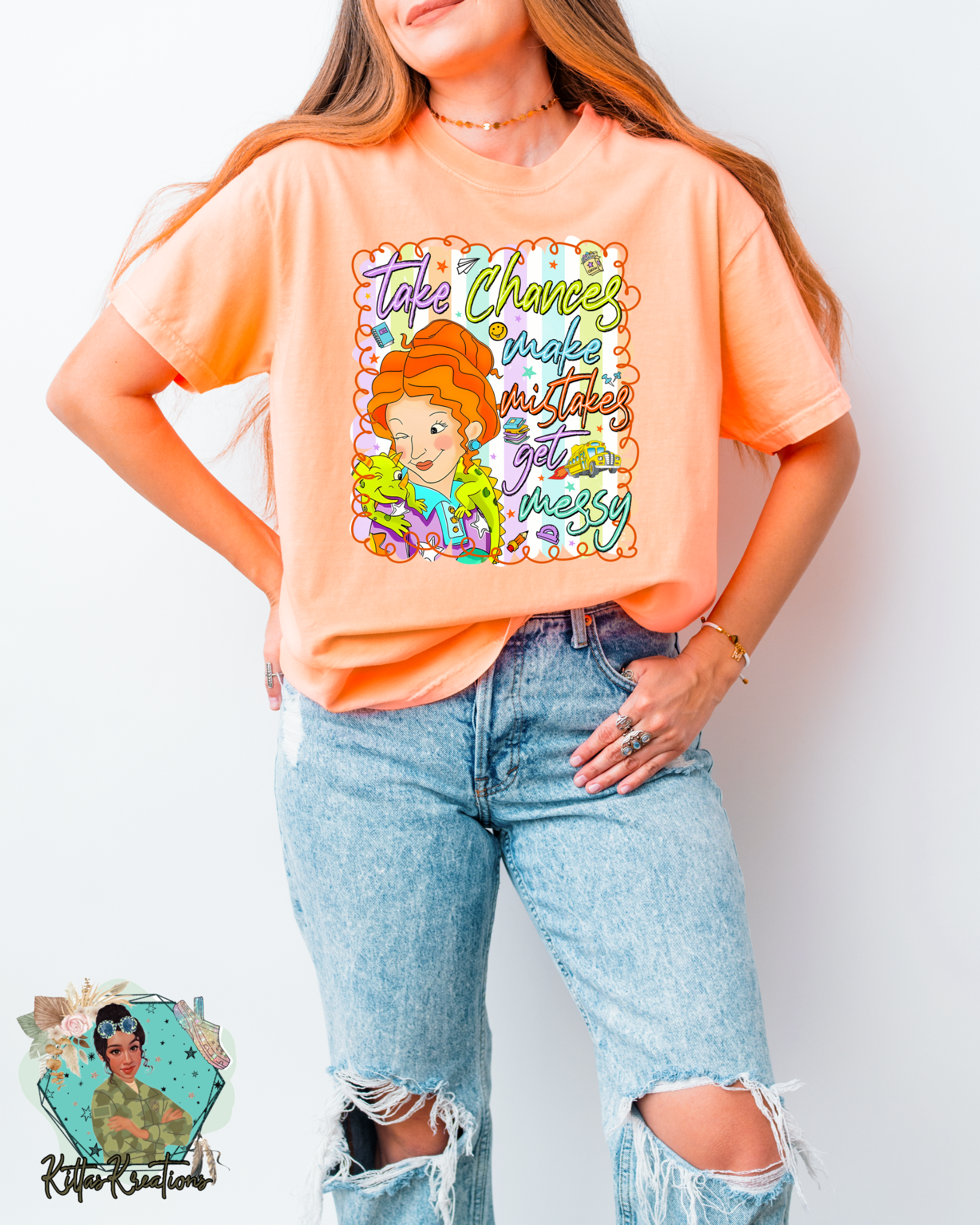 Neon Cantaloupe Comfort Colors T-shirt with the above design heat pressed on.